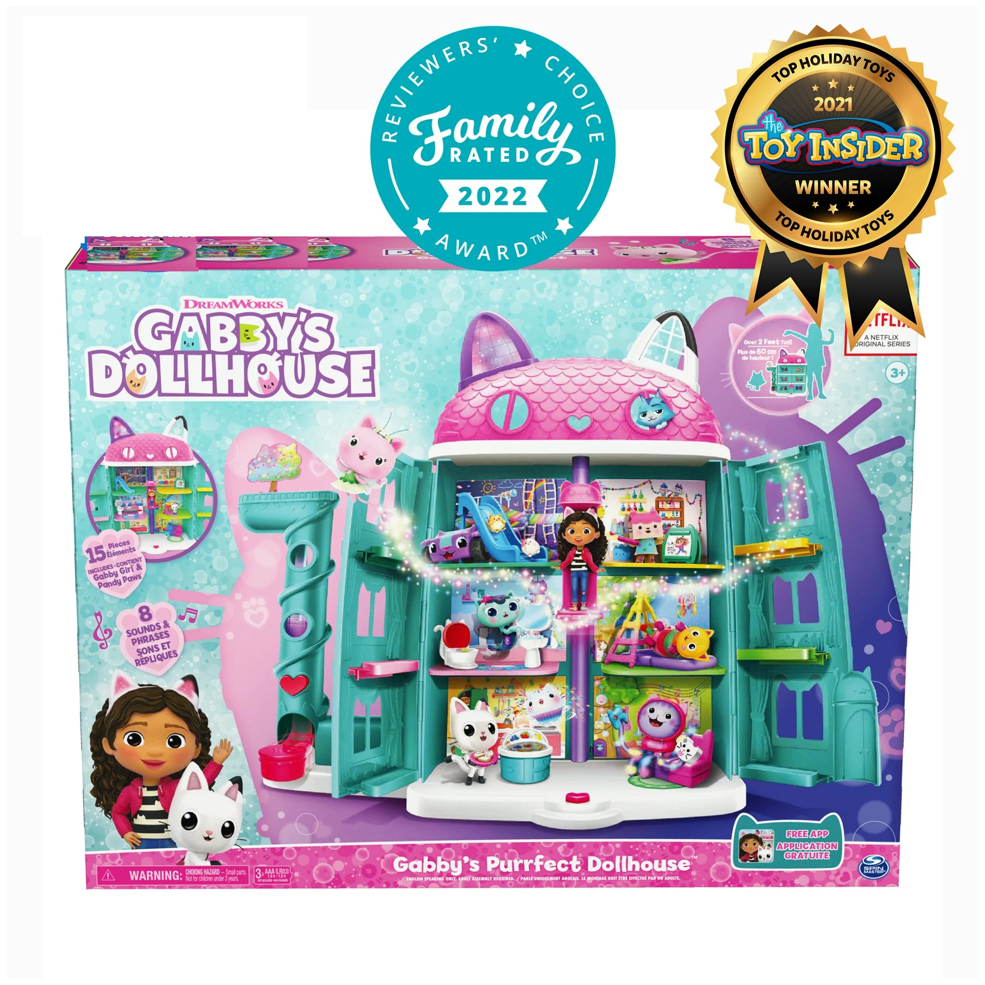 * Incluye 15 piezas: 1 casa de muñecas, 1 figura de Gabby, 1 figura de Pandy Paws, 8 muebles, 2 entregas de casa de muñecas, 3 accesorios, 1 hoja de instrucciones